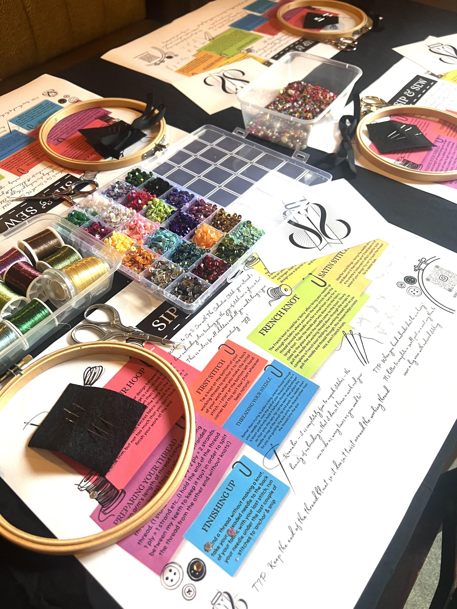 I supply original Sip & Sew patterns to work with or, if you want something truly unique, I can create a pattern from your company logo or something special to your team - the perfect way to adorn your work space after the event!