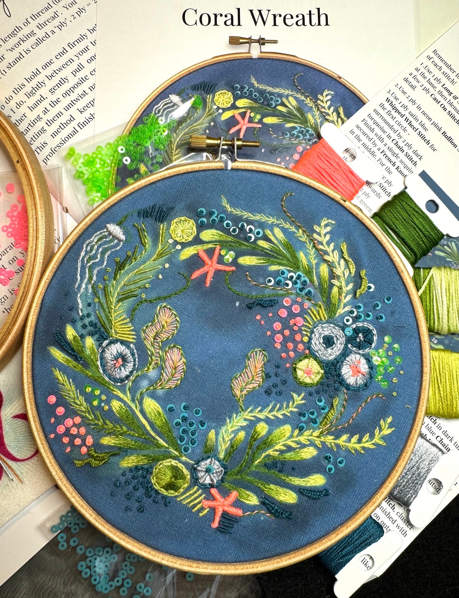 Dive into a world of wonder with the Underwater Coral Wreath Embroidery Kit — everything you need to stitch a mesmerizing coral wreath that brings the magic of the ocean to your walls and home décor.