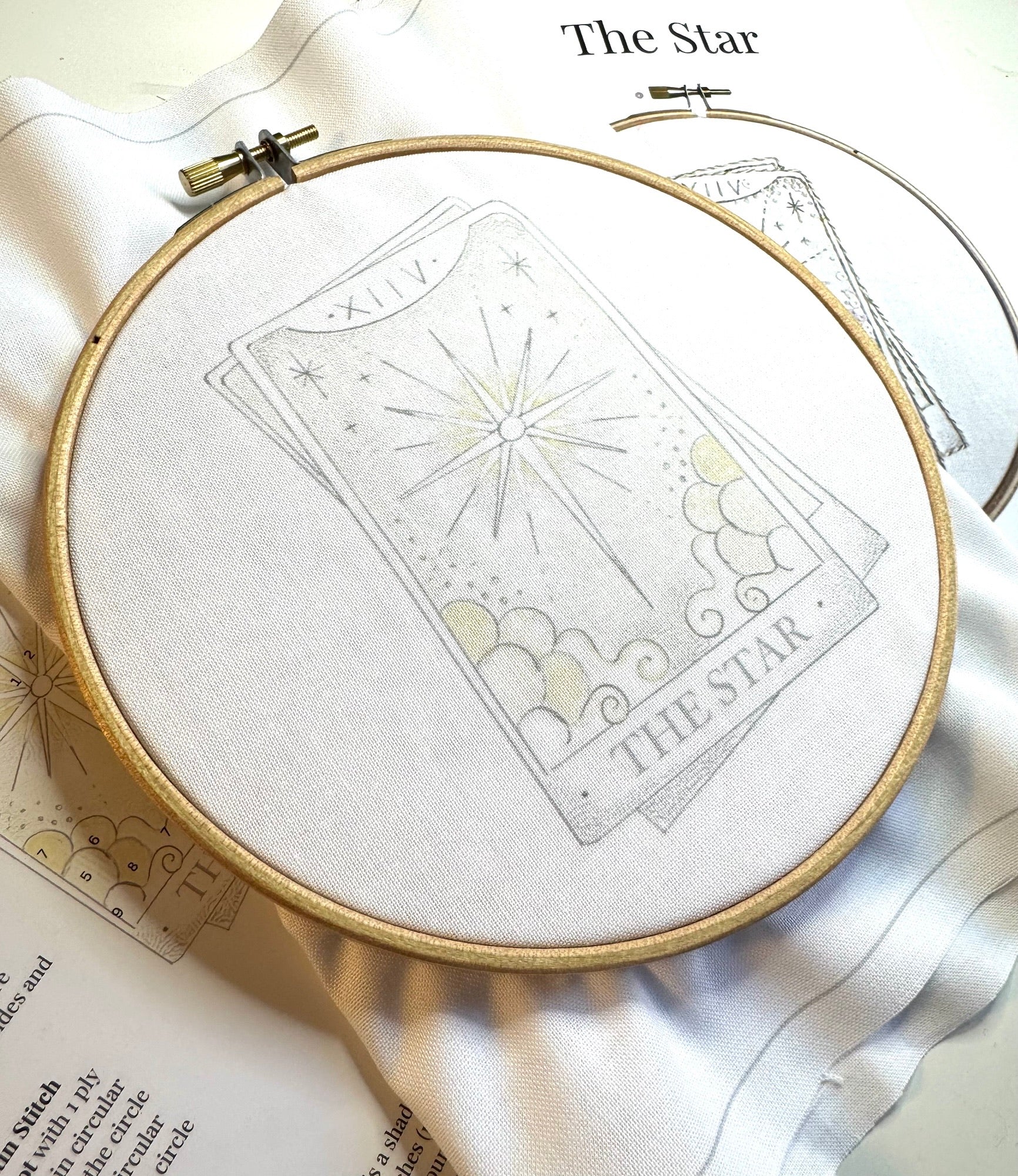The Star Tarot Card embroidery panel is perfect for those who already have materials at home. Including full stitch instruction booklet plus your initial printed on premium calico, and backing fabric, dive straight into your personalised embroidery design with the colours and embellishments of your choice giving you the freedom to let your creativity run wild!